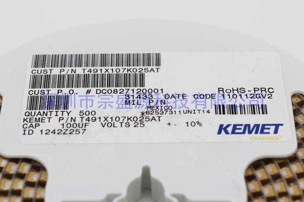 基美鉭電容 7343 25V 100UF? X型 T491X107K025AT