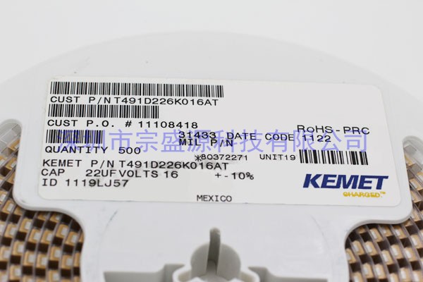 KEMET鉭電容 7343 16V 22UF T491D226K016AT