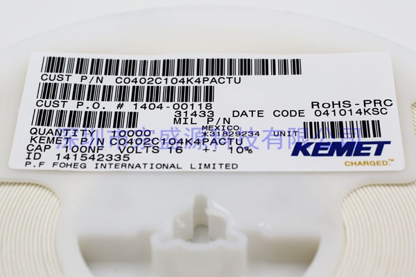KEMET陶瓷電容 0402 16V 0.1UF C0402C104K4PACTU
