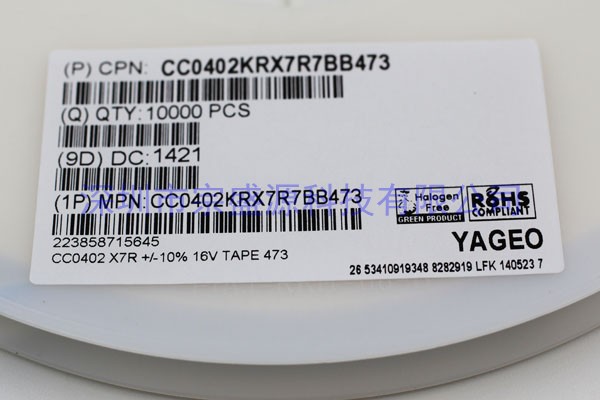 國巨陶瓷電容 0402 16V 0.047UF CC0402KRX7R7BB473