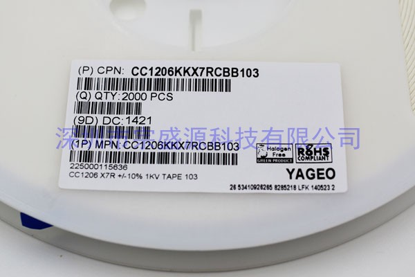 國巨陶瓷電容 1206 1000V 0.01UF CC1206KKX7RCBB103